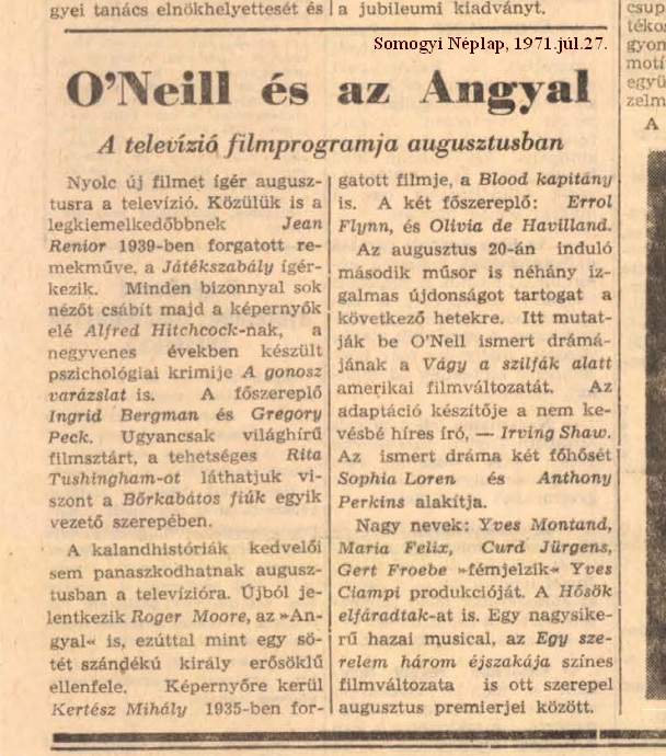 O'Neill és az Angyal - a televízió programja augusztusban (Somogyi Néplap, 1971.júl.27.)