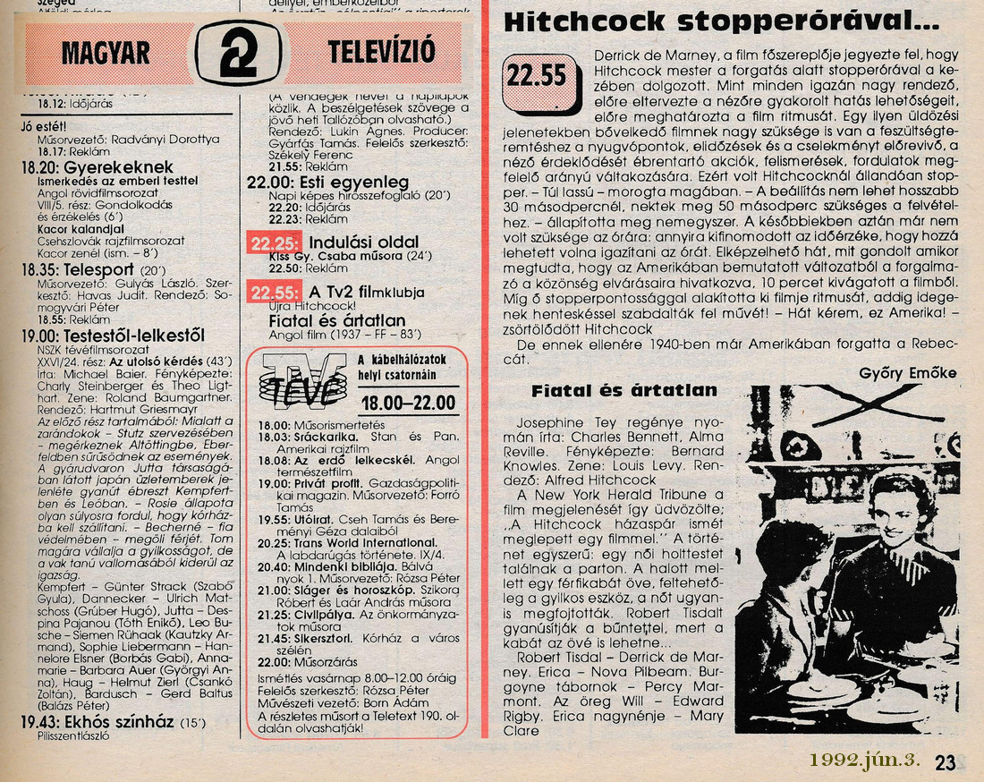 (MRT - rádió- és televízió újság, 1990-es évekbeli számaiból) [Vissza a Hitchcock kezdőoldalra!]