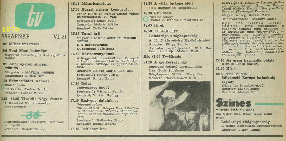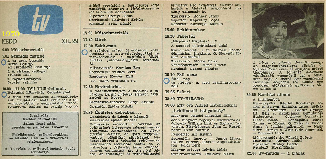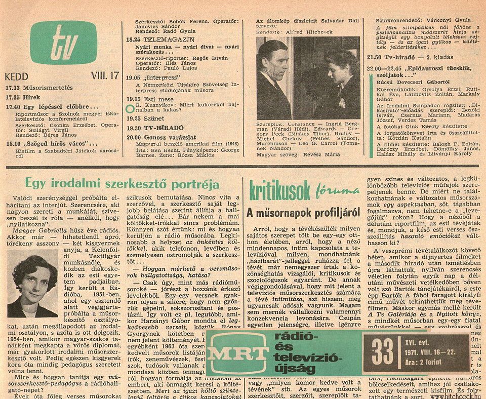 (MRT - rádió- és televízió újság, 1970-es évekbeli számaiból) [Vissza a Hitchcock kezdőoldalra!]