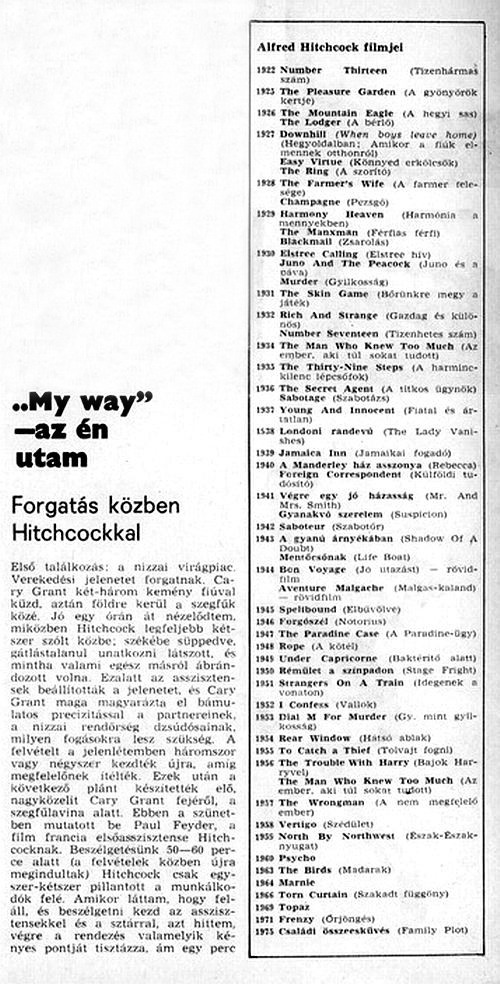 "My way" - az én utam Forgatás közben Hitchcockkal Filmvilág, 1980/7. (26-27.oldal) [Vissza a Hitchcock kezdőoldalra!]