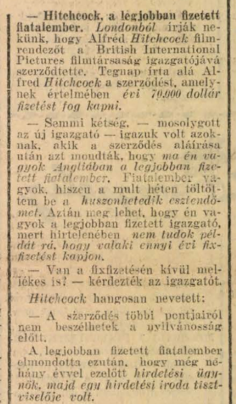 Hitchcock, a legjobban fizetett fiatalember - 1927 -