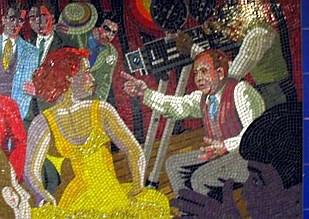 a metrómegállót 17 mozaikkép díszíti, megemlékezve Hitchcock szülőhelyéről. (80.000 mozaikkő, 7 hónapig készült, 2001.ápr.) - képek a mozaikokról |