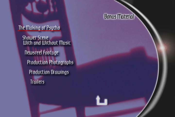 Bonus material menu:
