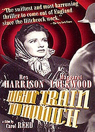 Train to MunichÉjszakai vonat Münchenbe (1940, GB, 96perc, fekete-fehér) Rendezte: Carol Reed Irta: Sidney Gilliat és Frank Launder Zene: Louis Levy Operatőr: Otto Kanturek Szereplők: Margaret Lockwood (Anna Bomasch), Rex Harrison (Gus Bennett), Paul Henreid (Karl Marsen (as Paul von Henreid)), Basil Radford (Charters), Naunton Wayne (Caldicott), James Harcourt (Axel Bomasch) Stúdió: Gaumont-British Studios, Lime Grove, Shepherd's Bush, London, England, UK (Twentieth Century Productions Ltd.) Bemutató: 1940.dec.29. (USA) A filmet a Londoni randevú (1938) folytatásának hirdették, valójában egy másik történet. A Londoni randevúból több szereplő visszaköszön és a film fő helyszíne ismét egy vonat... Hasonlóan izgalmas és humoros.