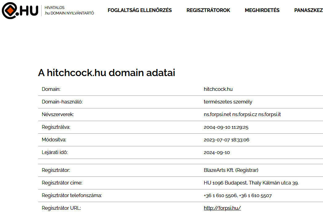 04-09-10: hivatalosan bejegyezve a www.hitchcock.hu domain